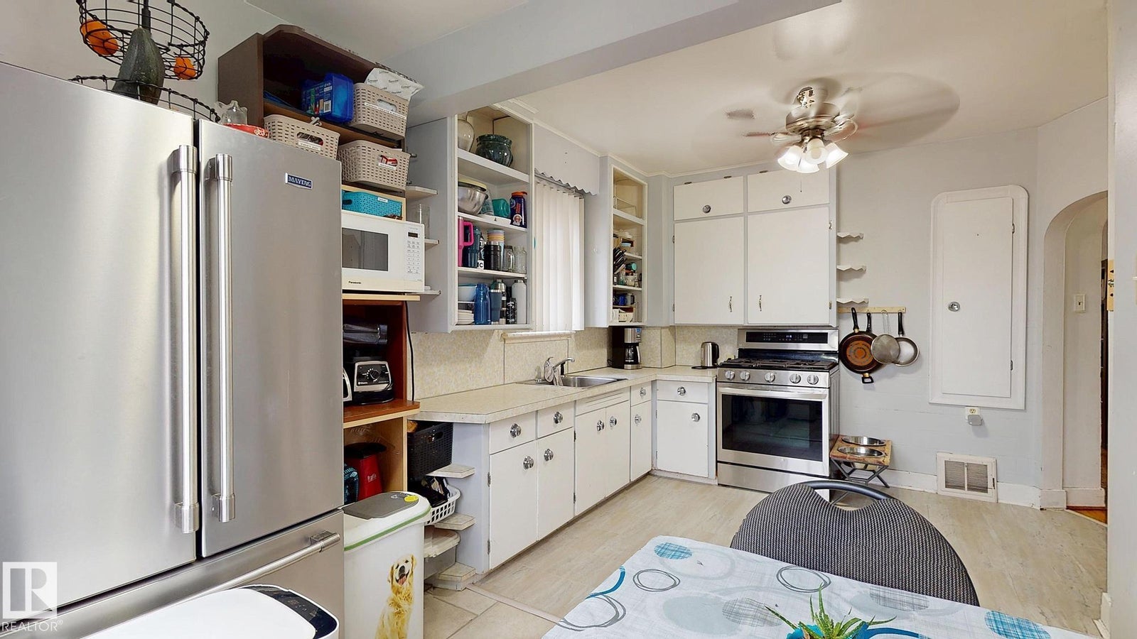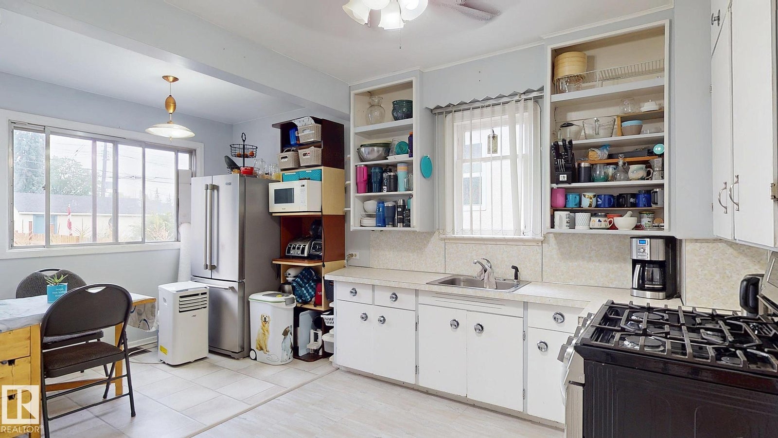 Live, work & play from home in Edmonton's Oldest River Valley neighborhood of Cromdale! Central location, surrounded by Urban green space, this Charming 2 bdrm, 1.5 bath Character home is located on a mature tree lined street. Easy access to RIVER VALLEY TRAILS -Perfect for outdoor enthusiasts. Steps to Borden Park, Concordia University & Ada Blvd. Endless scenic walks & river valley views. Perfect starter home, or investment. This home boasts original 40's details throughout the MF, arched hallways, coved ceilings, glass handle doors & gleaming hardwood are some of the quaint features of this bright sunny home. Bsmt is FF & ready for your updates/touches to make it warm and cozy! Also, a 2 pce bath, laundry & 3rd den, or crafts room with a large closet. Fenced yard is ready for a gardener's touch with SW exposure. Single det garage. Extra parking/space for your RV/Toys. Amenities just minutes away, sports facilities, groceries, food services LRT & DT.